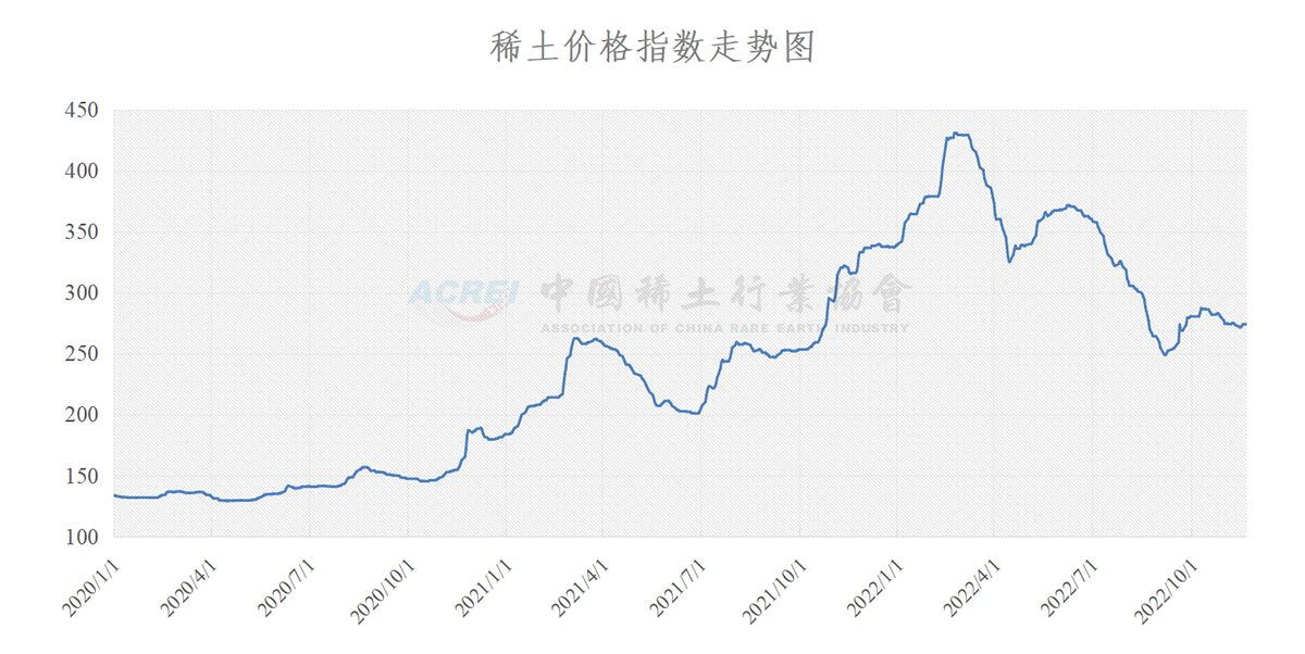 指数计算:稀土价格指数是由基期和报告期的交易数据计算组成,基期选用2010年全年的交易数据,报告期选用全国20多家稀土企业每天实时交易数据的平均值,代入稀土指数价格模型计算得出。(基期指数为100)来源:中国稀土行业协会